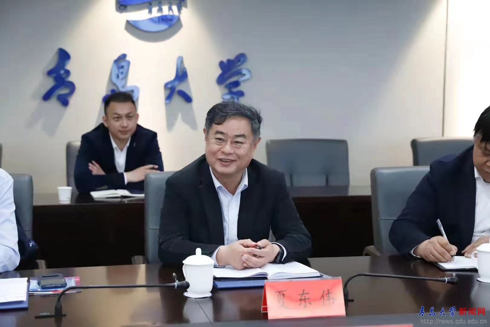 夏东伟代表学校对龙杰一行来访表示欢迎。夏校长介绍了beat365概况和近年在人才培养、师资队伍、服务地方等方面取得的成绩,并介绍了学校学科群建设的整体定位和发展路径。