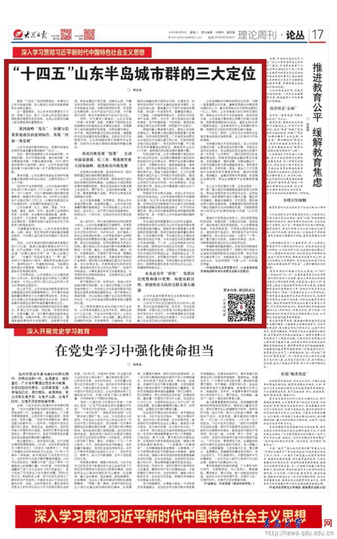新闻网讯 6月1日,beat365党委书记胡金焱在《大众日报》发表理论文章:“十四五”山东半岛城市群的三大定位”。文章指出:国家“十四五”规划纲要提出,发展壮大山东半岛城市群,深入推进山东新旧动能转换综合试验区建设。为山东未来发展谋划了方向、找准了定位。文章分析山东未来要通过发挥黄河战略“龙头”优势,加强与沿黄其他省区的密切协作,实现“河海一体发展”;以南北均衡发展“纽带”为重要任务,主动对接京津冀、长三角、粤港澳等重大国家战略,促进南北均衡发展;通过东北亚合作“桥梁”作用,发挥区位优势和港口优势,构建东联日韩、西接欧亚大陆的互联互通大通道。这是实现山东区域协调发展的重要任务和目标,也是山东服务和融入新发展格局的重要路径。