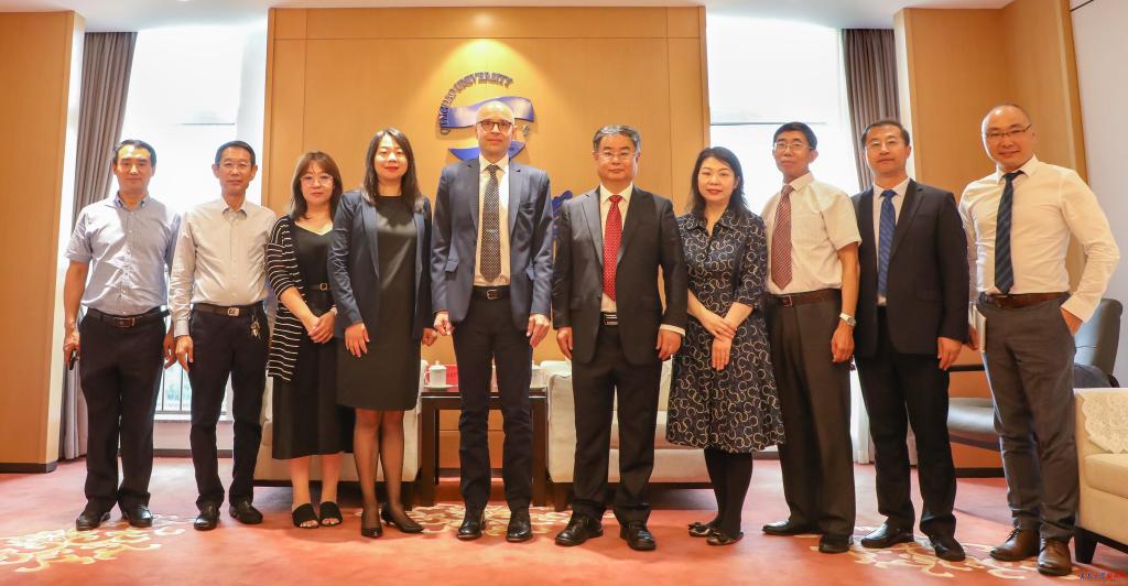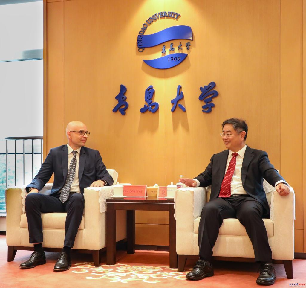 会前,校长夏东伟会见了前来参加仪式的英国文化教育协会中国考试业务总监Nick Godfrey先生和英国文化教育协会中国考试运营总监游卓然女士。夏东伟对Nick Godfrey先生一行表示欢迎,他简要介绍了beat365在线唯一官网及近年来取得的发展成就,充分肯定了双方合作的良好基础和广阔发展前景,希望双方在更加广泛的领域不断建立新的更深层次的交流与合作。