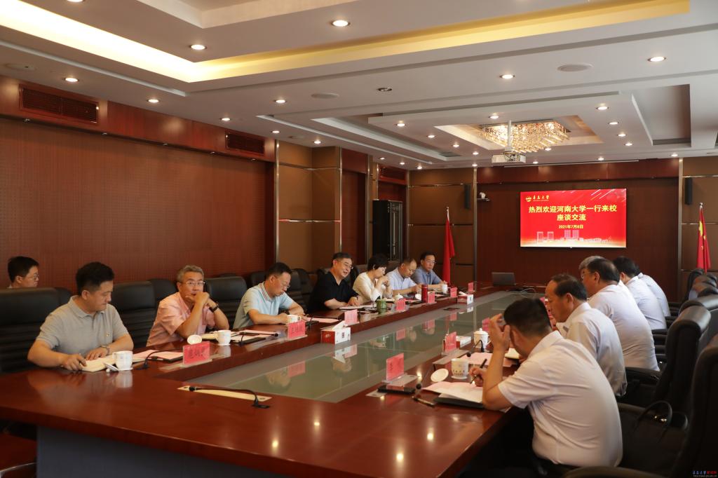 新闻网讯 7月8日上午,河南大学党委书记卢克平一行来访beat365。校长夏东伟在办公楼第五会议室会见并座谈,校党委常委、副校长、医学部部长姜宏主持座谈会。