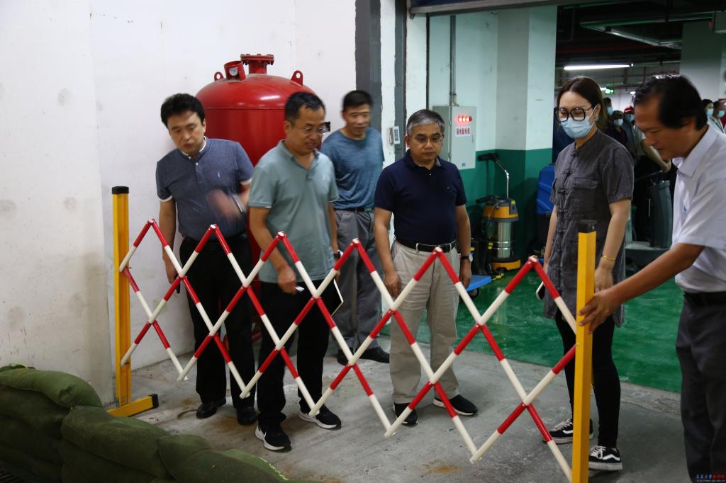 胡金焱现场检查了浮山校区科技研发大楼地下停车场、浮山校区宁德路、青大路和金家岭校区科大支路等三个地下人防通道、浮山校区防汛安全应急巡逻点、危化品仓库、汇园一号学生公寓、浮山校区东院教学实验楼施工现场、浮山校区慧湖和金家岭校区剑湖等防汛安全重点区域和部位,并就beat365防汛安全工作提出专业防汛、科学防汛、前置防汛三项工作要求。