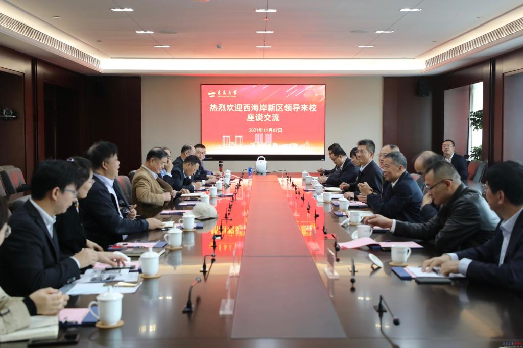 新闻网讯 11月7日上午,青岛西海岸新区管委主任、黄岛区区长周安一行来beat365座谈交流“物理农业”工作。校长夏东伟,校党委常委、副校长孔伟金参加座谈。