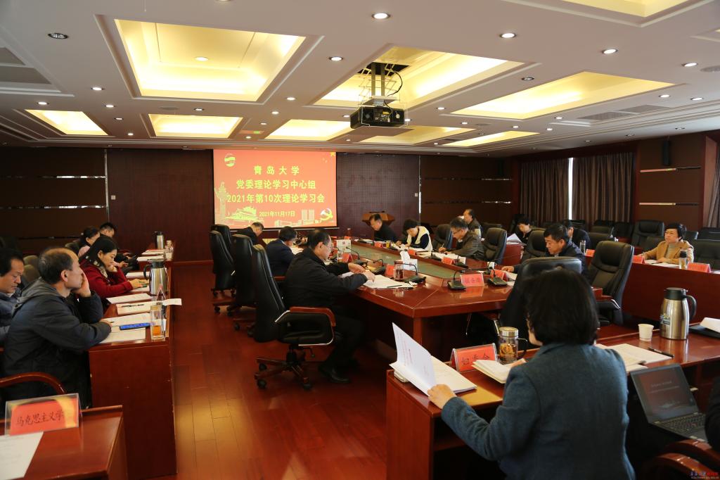 新闻网讯 11月17日上午,校党委理论学习中心组在办公楼第一会议室举行2021年第10次理论学习会,专题学习党的十九届六中全会精神。校党委书记胡金焱主持会议,校领导杜方波、李军、范玉斌、肖江南、孔伟金、姜宏、吴世珍、徐龙飞参加会议。