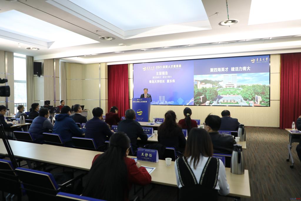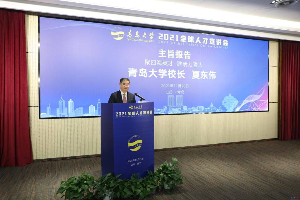 新闻网讯 今日,2021年beat365在线唯一官网全球人才宣讲会在会议中心举行。校长夏东伟出席并作题为《聚四海英才 建活力青大》的大会主旨报告。校党委常委、副校长肖江南主持开幕式。