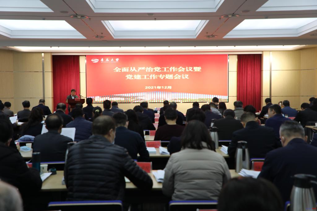 新闻网讯 12月9日上午,学校全面从严治党工作会议暨党建工作专题会议在会议中心404会议室召开。会议深入学习贯彻党的十九届六中全会精神,贯彻落实习近平总书记关于全面从严治党重要论述和高校党建工作重要指示精神,学习贯彻省委十一届十四次全会精神,传达全国、全省高校党的建设工作会议精神和全省基层党建工作座谈会精神,研究部署全面从严治党工作,交流基层党建工作经验,推动提升基层党建质量。党委书记胡金焱出席会议并讲话。党委副书记杜方波主持会议。校领导汪黎明、范玉斌、吴世珍、徐龙飞参加会议。