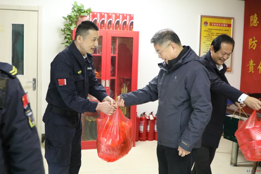 新闻网讯 1月29日上午,校长夏东伟带队看望慰问了寒假期间坚守工作一线的教职医务员工。