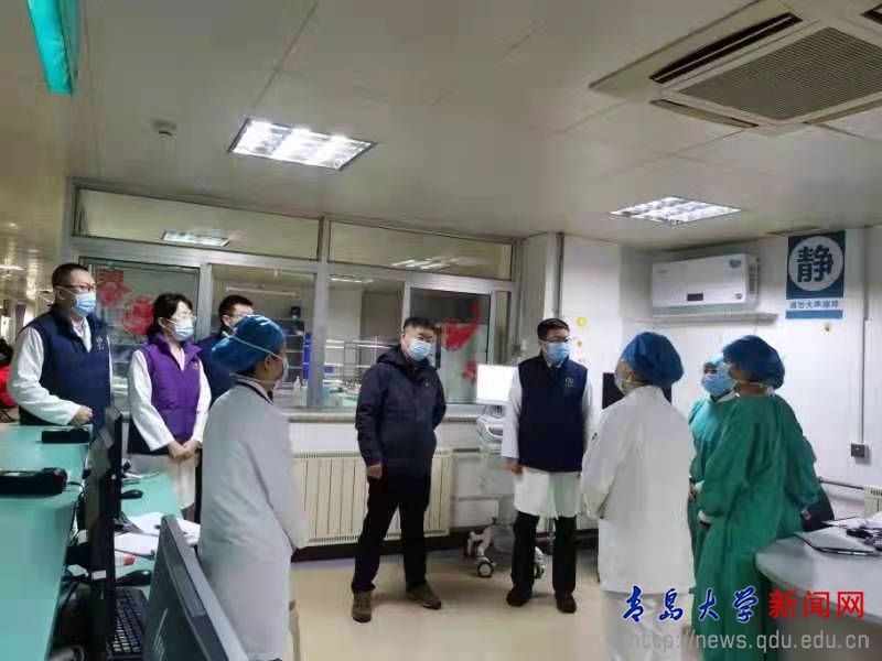 夏东伟在党委常委、副校长姜宏的陪同下,先来到附属医院市南院区,看望慰问了急诊部、发热门诊、内分泌科病房的医护人员。夏东伟向一线医护人员致以节日问候和新春祝福,对他们坚守岗位,无私奉献,勇于担当表示感谢,勉励他们恪尽职守,全力以赴,医治病患,为人民健康保驾护航。