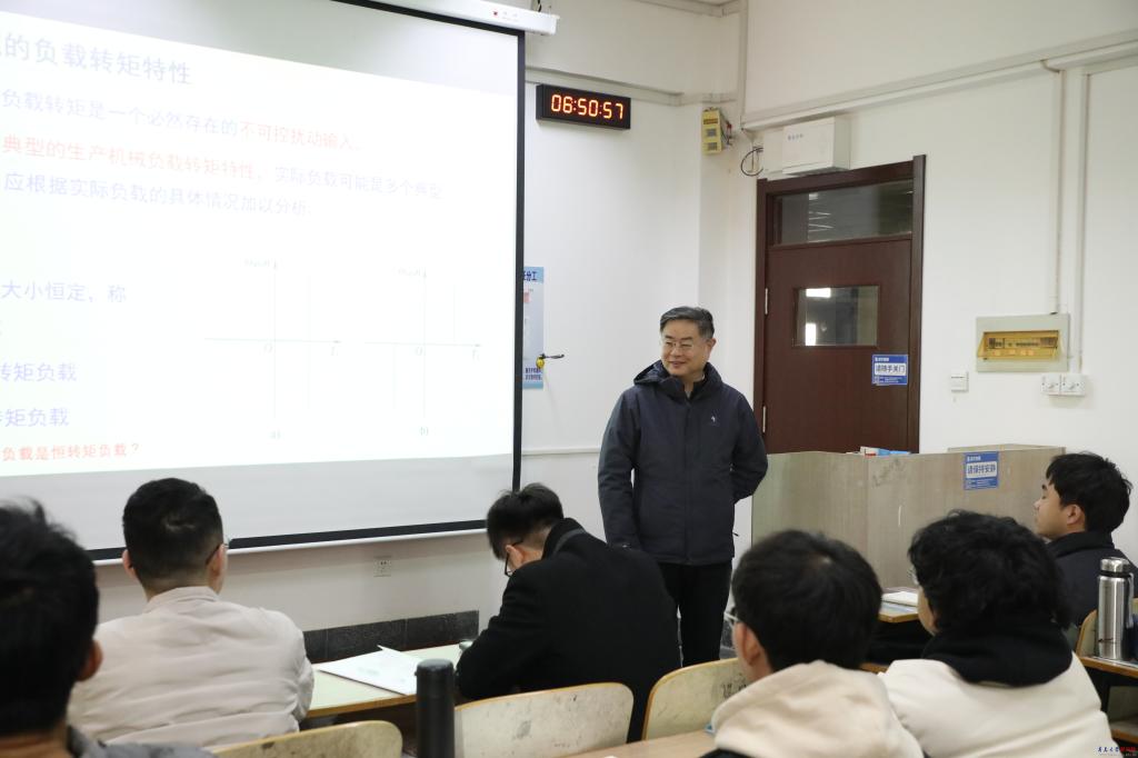 博学楼105教室,夏东伟认真聆听电气工程学院衣鹏老师的《电力传动与控制》课程。