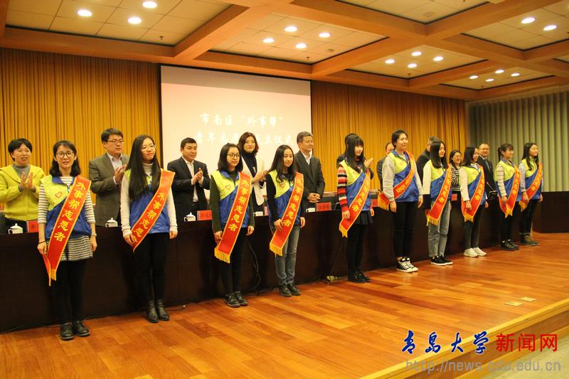 仪式首先以视频形式展示了“外事帮”青年志愿者服务团既往的活动,团区委书记赵爱萍与外语学院党委书记吴绍新签署了合作共建协议。与会嘉宾为“外事帮”青年志愿者披上绶带。志愿者代表、外语学院学生史雪在发言中表示要继续发扬“奉献、友爱、互助、进步”的精神,号召更多有志于从事志愿服务的外语人才,加入到“外事帮”团队中。