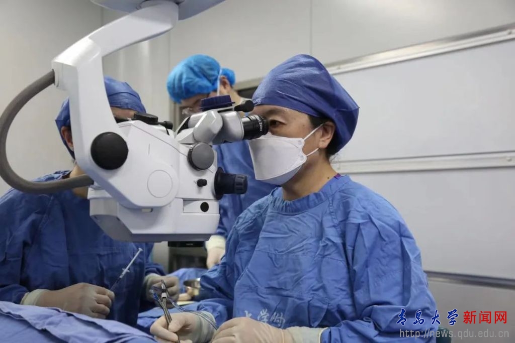 同时在青大附院眼科,科主任赵桂秋带领团队利用供体的一对角膜成功为两名年轻的患者顺利移植,两名患者经过黑暗世界的无奈和折磨,最终重见光明,获得重生。