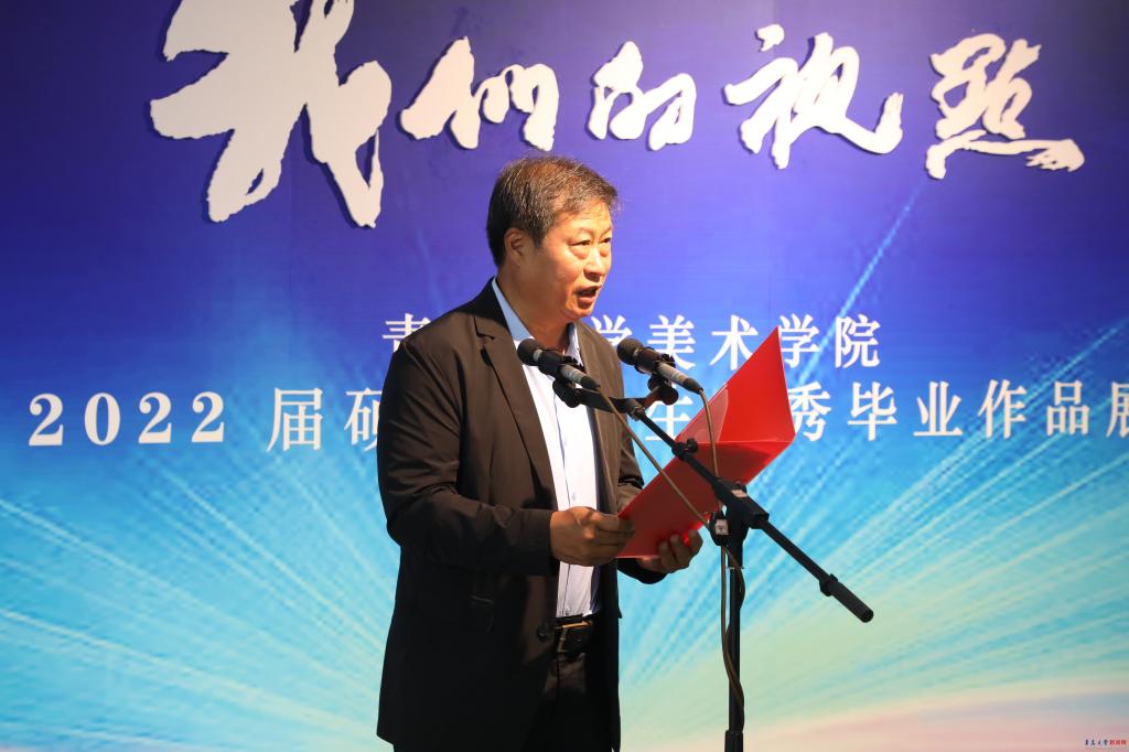 美术学院院长王绍波在致辞中说,多年来,美术学院依托学校开放多元、交叉融合的学科集群资源优势,坚持服务国家战略,把握艺术前沿,深化国际互动、强化社会实践,实现艺术的创造性转化和创新性发展,为社会输送了大批艺术人才,学院发展呈现出前所未有的朝气和活力。本次毕业生作品中,美院学子用色彩、笔墨、设计去讴歌时代中的感动、担当、奉献、无畏和温暖,生动地诠释了美术学院“尊重传统、跨域融合、可持续发展”的教学理念。这既是同学们学习成果的总结汇报,也是学院教学成果的一次检阅。他表示,美术学院将不断丰富学生的艺术培养策略,尤其重视学生创新力、文化理解力和批判能力的培养,培养更多兼具传统文化底蕴和国际视野、基础宽厚、多元发展的创新型艺术人才。