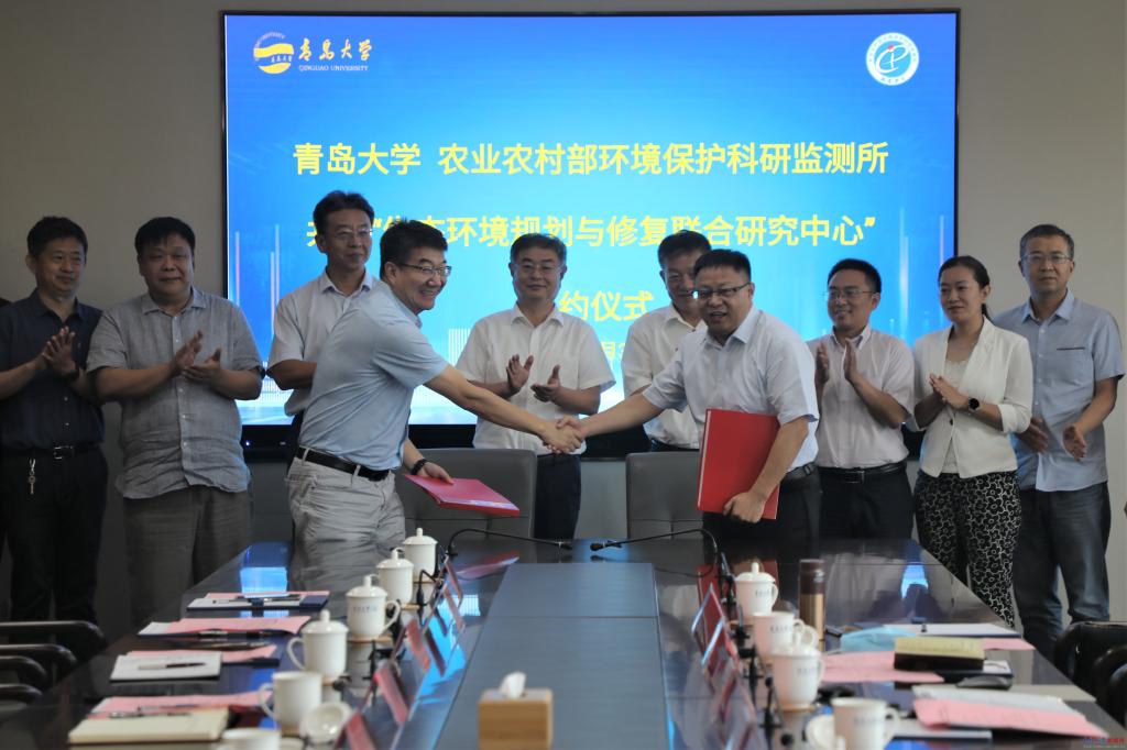 beat365环境科学与工程学院院长佘希林与环境保护科研监测所综合办公室(人事处)处长王农共同签订《beat365在线唯一官网 农业农村部环境保护科研监测所共建“生态环境规划与修复联合研究中心”合作协议》。