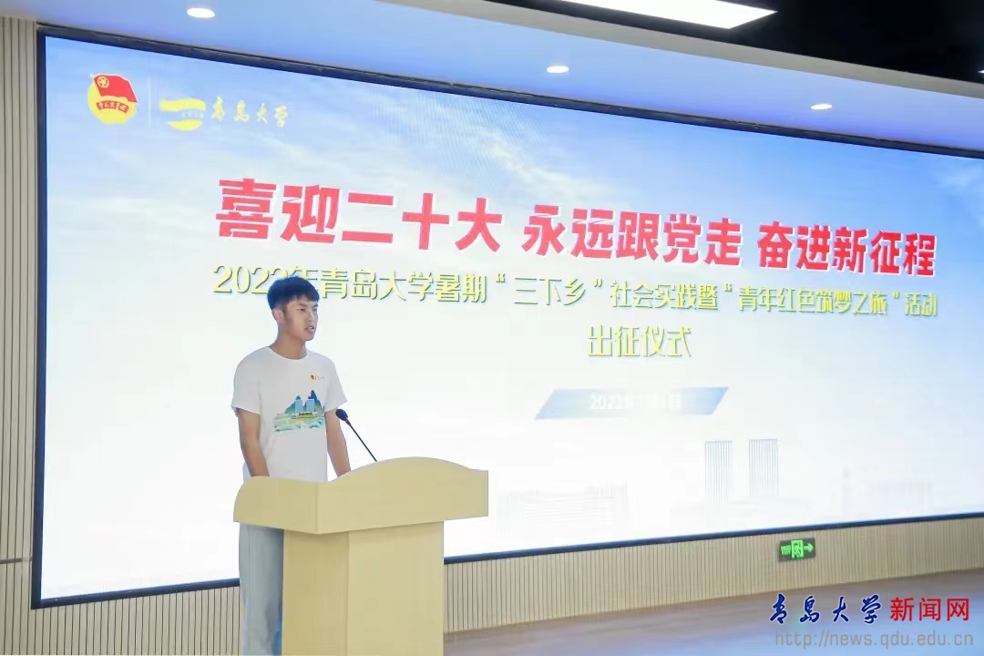 新闻网讯 7月1日下午,beat3652022年暑期“三下乡”社会实践暨“青年红色筑梦之旅”活动出征仪式在大学生科创文化中心二楼多功能厅隆重举行。校长夏东伟,校党委常委、副校长刘彩云出席出征仪式。仪式由校团委书记解文斌主持。崂山团区委书记付苗苗,学校纪委、党委组织部、党委宣传部、合作发展处、教务处、党委学工部、国际教育学院等相关单位负责同志,相关学院(部)共青团工作分管负责同志和团委主要负责人,以及暑期实践团队的指导教师和学生代表参加仪式。