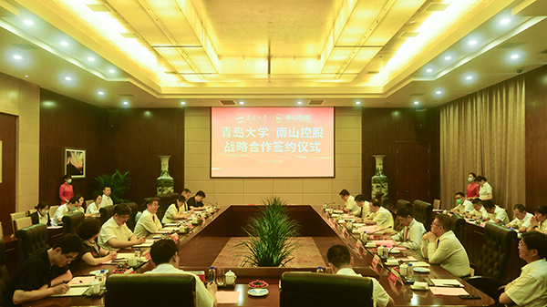 在随后的座谈会上,研究生院、合作发展处、纺织服装学院负责人及教师代表,南山智尚、南山科技集团和烟台南山学院负责人分别就科研平台、学科建设和人才培养等方面的合作内容进行了深入交流。