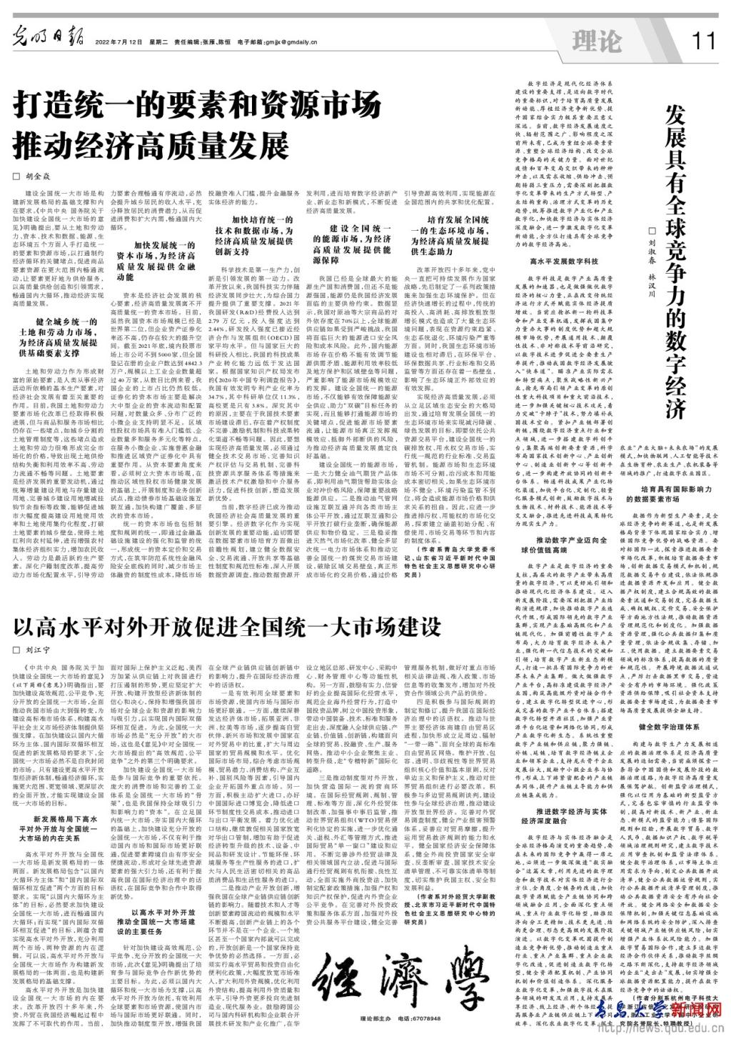 新闻网讯 7月12日,beat365党委书记胡金焱在《光明日报》发表题为“打造统一的要素和资源市场 推动经济高质量发展”的理论文章。