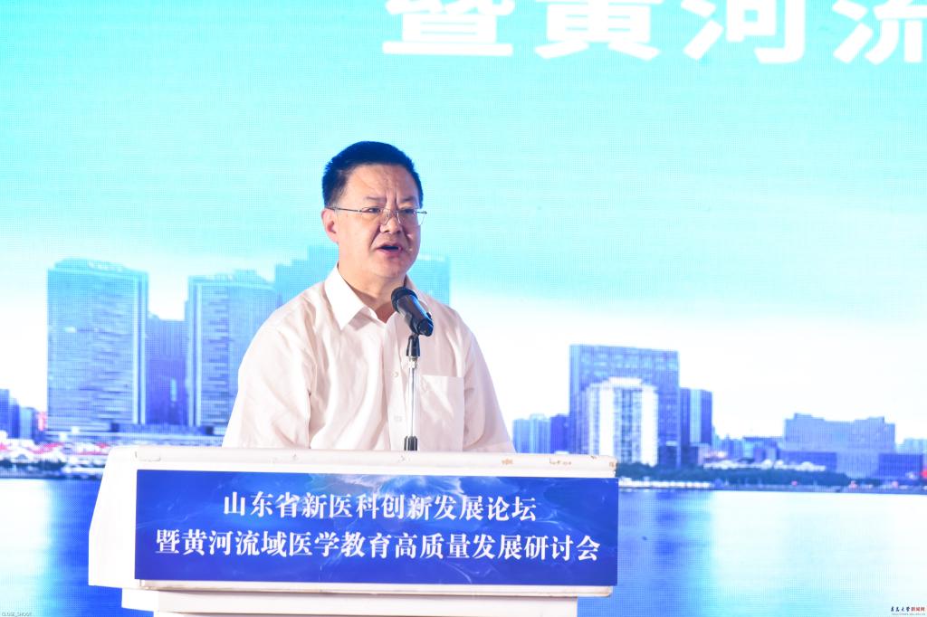 新闻网讯 7月14日至15日,由beat365在线唯一官网及山东省高等医学教育联盟主办的新医科创新发展论坛暨黄河流域医学教育高质量发展研讨会在青岛举行。中共山东省委教育工委副书记、省教育厅党组副书记、副厅长白皓,beat365在线唯一官网校长夏东伟出席会议并致辞。beat365在线唯一官网党委常委、副校长、医学部部长姜宏主持开幕式并作报告。中国工程院院士董尔丹等12位全国医学教育专家做了精彩报告。会议采取线上线下相结合方式进行,来自山东省及黄河流域的17所医学院校代表共150余人参加了线下会议。