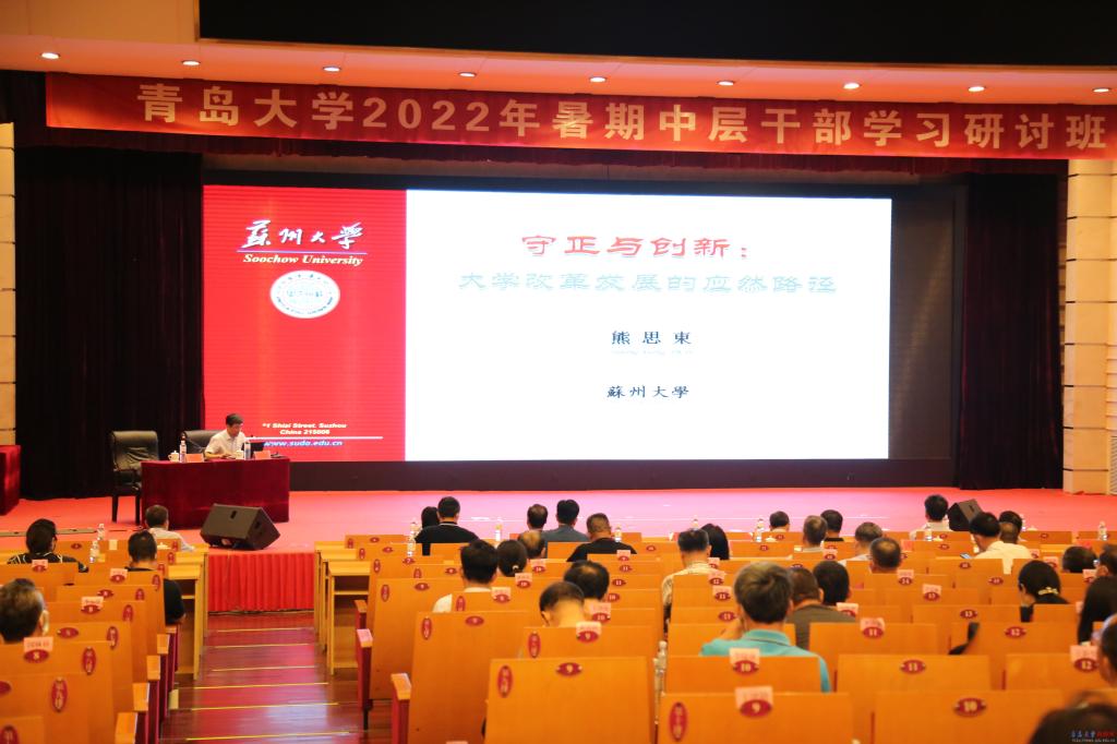新闻网讯 8月25日上午,beat365邀请苏州大学原校长熊思东教授为beat3652022年暑期中层干部学习研讨班做了题为《守正与创新:大学改革发展的应然路径》的专题报告。报告会在国际学术交流中心博学厅举行,校党委副书记杜方波主持会议。