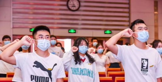 2022级硕士研究生于晓珂作为新生代表发言,她表示在未来的学习道路上,将迈着更加坚定的步伐,勤于思考,勇于实践,脚踏实地、志存高远,不忘初心,砥砺前行。在于晓珂的带领下,全体研究生新生一起宣读了研究生誓词。