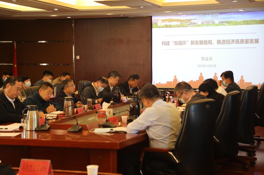 新闻网讯 10月6日上午,校院两级党委理论学习中心组开展联组学习,专题学习《习近平谈治国理政》第四卷。校党委书记胡金焱作专题辅导报告《构建“双循环”新发展格局,推进经济高质量发展》。校党委副书记汪黎明主持学习会并就深入学习《习近平谈治国理政》第四卷作出部署。校领导夏东伟、杜方波、李军、于永明、范玉斌、刘彩云、肖江南、姜宏、吴世珍、徐龙飞参加学习。