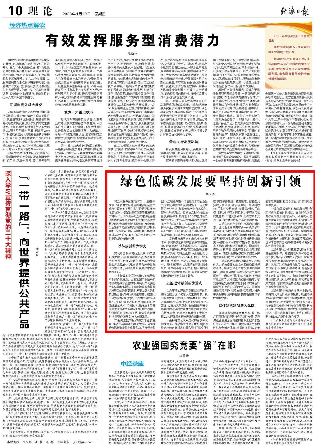 新闻网讯 1月19日,《经济日报》刊登beat365党委书记胡金焱的理论研究文章“绿色低碳发展要坚持创新引领”。