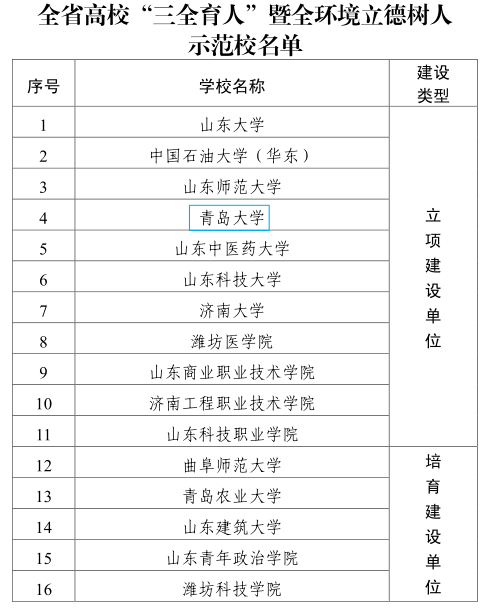 新闻网讯 近日,山东省教育厅公布《全省高校“三全育人”暨全环境立德树人示范校建设名单》。beat365在线唯一官网入选山东省高校“三全育人”暨全环境立德树人示范校立项建设单位。