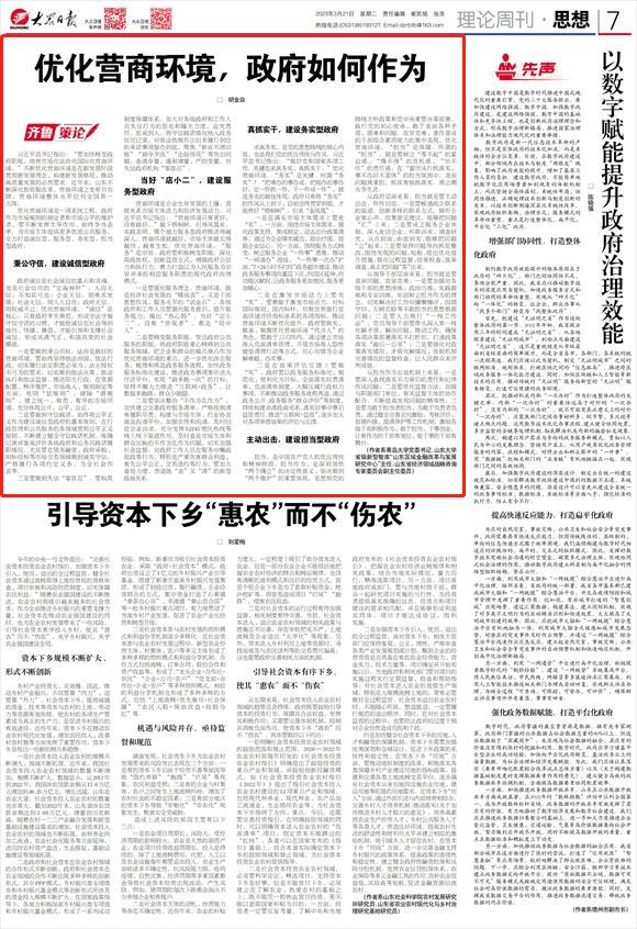 新闻网讯 3月21日,《大众日报》刊登beat365党委书记胡金焱的理论研究文章《优化营商环境,政府如何作为》。