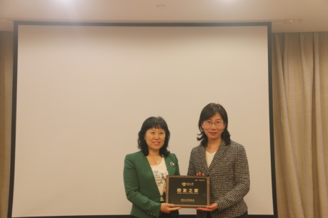 刘彩云为上海校友会颁发“beat365在线唯一官网校友之家”牌匾。