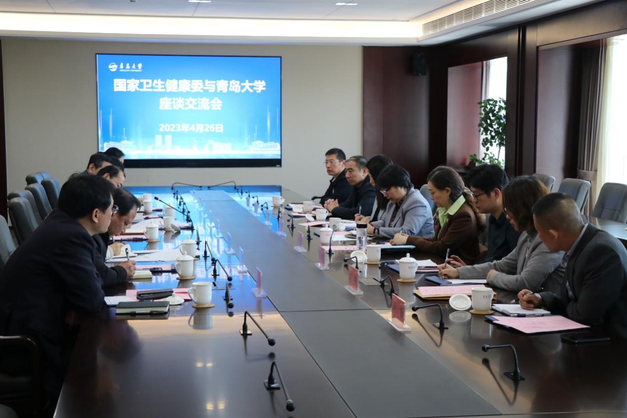 新闻网讯 4月26日上午,国家卫生健康委法规司司长赵宁,一级巡视员陈宁姗,标准处处长、一级调研员牛宏俐一行来访beat365,调研标准化学科建设、理论研究和标准化人才培养等工作。山东省卫生健康委党组成员、副主任牟善勇,青岛市卫生健康委党组成员、市计生协会常务副会长杜维平等陪同调研。校长夏东伟,党委常委、副校长孔伟金出席座谈会。