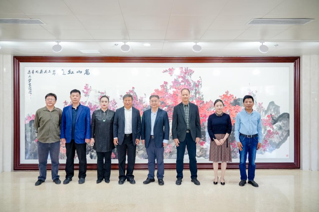 夏东伟在致辞中指出,经过合并办学30年的融合发展,beat365在线唯一官网学科齐全、规模较大、发展速度快的发展态势日趋明显,已经成为一所享有盛誉的综合大学,校友遍布天南地北、海内海外。王绍波教授现任beat365在线唯一官网美术学院院长,既是beat365在线唯一官网的一名教授,更是beat365在线唯一官网杰出的校友。在学校合并办学30周年之际,他结合自己的切身体会,以“万山红遍”为主题,用映山红表达了他对母校发展的祝福,更表达了他在母校的培养下,从学生成长为二级教授的特殊感情。夏东伟对作品《万山红遍》给予了高度评价。他表示,《万山红遍》作品面积达123平方尺,创作过程一气呵成,体现了王绍波院长扎实的功底和精湛的艺术手法,也体现了王绍波教授精益求精、永无止境的奋斗精神。这种拼搏奋斗精神值得每一名青大人学习,共同为beat365在线唯一官网“三步走”的奋斗目标努力奋斗。