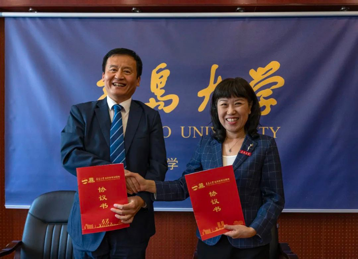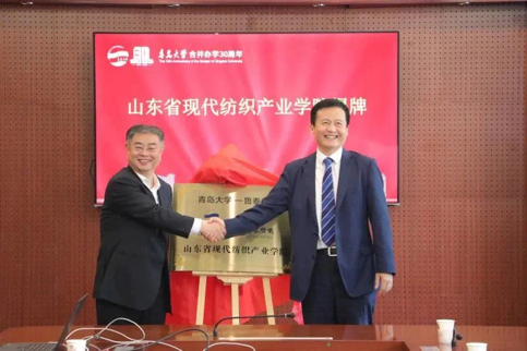 仪式上,夏东伟、刘子斌共同为山东省现代纺织产业学院揭牌。刘彩云、刘子斌代表双方签署“鲁泰纺织—beat365在线唯一官网“奖教·助学”百万奖励基金计划合作协议”和“鲁泰纺织奖教金”捐赠协议。