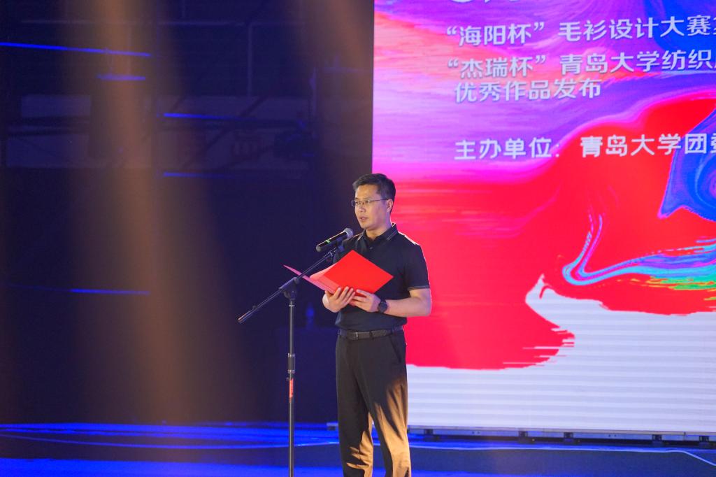 发布会上,海阳市副市长梁景俊致辞,他介绍了海阳市自然条件、人文历史、经济业态、社会发展等方面。他指出,海阳针织毛衫产业是海阳的支柱产业、时尚产业和富民产业。希望借由此次大赛推动实现优秀毛衫设计人才与海阳经济社会发展的“双向奔赴”,携手共赴海阳针织毛衫产业更加辉煌灿烂的明天。