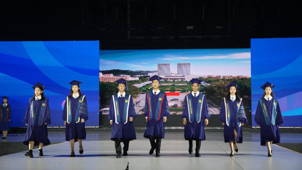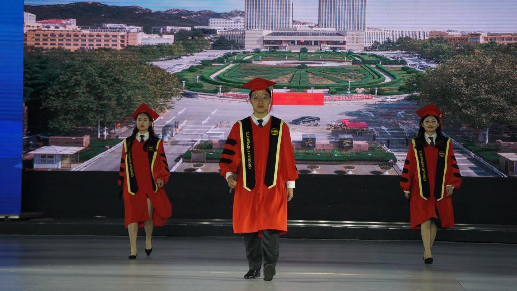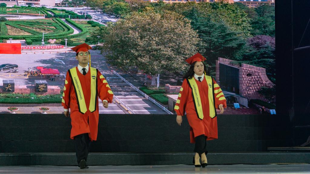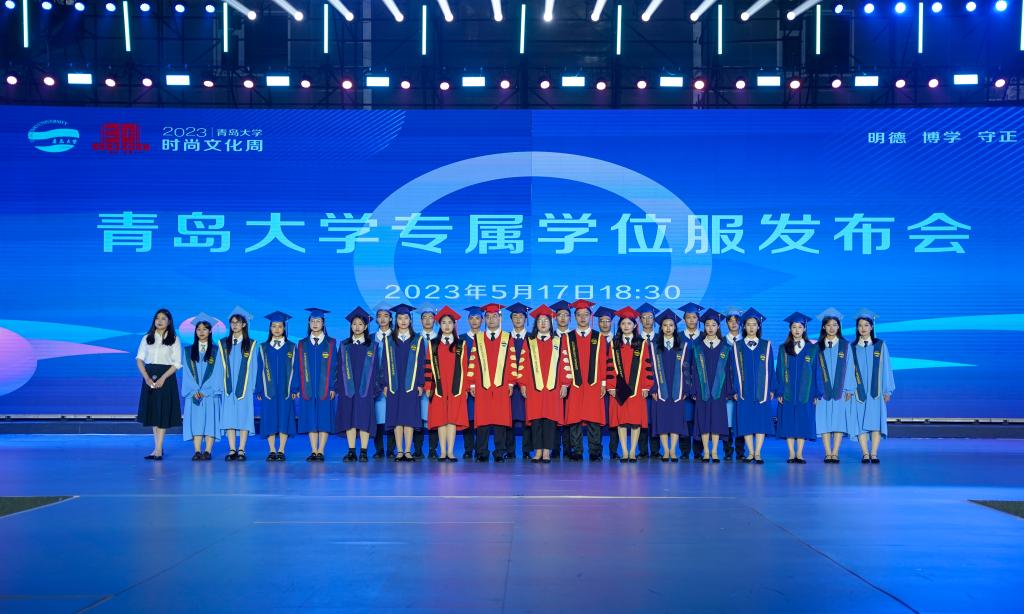 据悉,学位袍主色选择了beat365在线唯一官网的标志色“青大蓝色”及“青大红”。学生学位袍的设计取自于海洋色彩,随着学位层次的提高蓝色由浅及深,寓意学术研究精进深入。导师及校长服的袍身主色采用“青大红”,寓意师德如半天朱霞,凸显威严与庄重。右侧绣有beat365在线唯一官网的标准英文字体,左侧绣有校徽。学位帽装饰以beat365在线唯一官网的英文简称QU的金色金属挂饰,可拆卸作为毕业生的留念。此外,还设计了beat365在线唯一官网学位服周边产品,例如领带、袜子等。