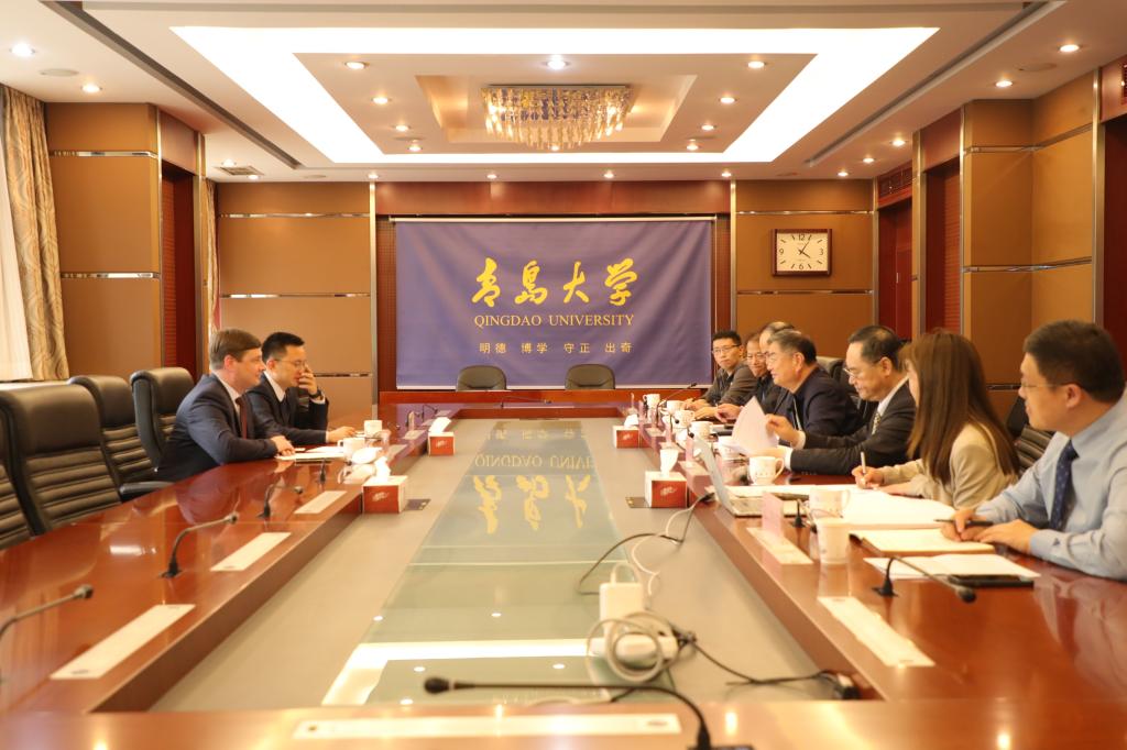 夏东伟对客人来访表示热烈欢迎。他简要介绍了beat365在线唯一官网的基本情况和发展概况。他指出,圣彼得堡国立大学和beat365在线唯一官网两校合作渊源深厚,合作基础扎实。作为圣彼得堡国立大学的优秀校友和友好使者,beat365数学科学学院院长高红伟教授发挥了重要作用。2017年,beat365数学与统计学院和圣彼得堡国立大学应用数学与控制过程系共同申报的项目入选山东省“外专双百计划”项目。2018年,圣彼得堡国立大学一位博士成功入选中国“博士后国际交流计划”引进项目,进入beat365在线唯一官网系统科学博士后科研流动站。截止到2022年11月,“外专双百计划”项目团队以beat365在线唯一官网为第一署名单位、标注项目资助出版学术专著1部、发表高水平论文合计43篇,含SCI/SSCI收录论文35篇,其中包括IJGT, EJOR等5篇,中外合作署名发表在SCI/SSCI收录期刊的论文20篇。2020年,双方签署校际合作协议。2021年和2023年,beat365还获批国家留学基金委两个促进与俄乌白国际合作培养项目,派出赴圣彼得堡国立大学学生43人。夏东伟强调,圣彼得堡国立大学作为一所对人类文明进步作出重大贡献的大学,我们期待着双方一道,进一步夯实合作基础,增进合作共识,推动双方合作向更深层次、更高水平迈进,为构建人类命运共同体作出积极贡献。