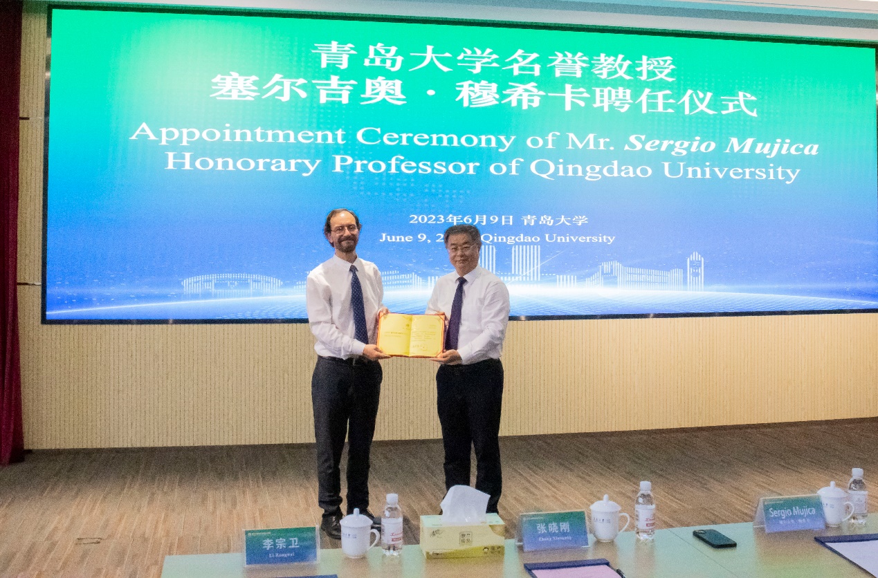 会上举行了beat365在线唯一官网名誉教授授予仪式,夏东伟为塞尔吉奥·穆希卡颁发beat365在线唯一官网名誉教授聘任证书。
