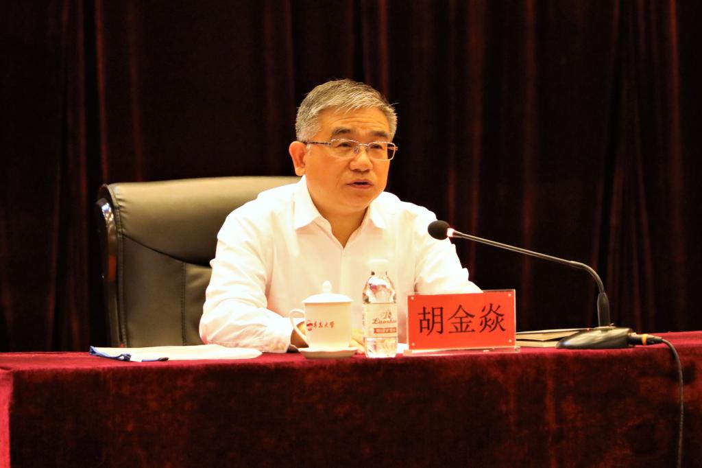 新闻网讯 6月14日上午,校党委书记、主题教育领导小组组长胡金焱以“深入学习贯彻习近平新时代中国特色社会主义思想 谱写以党的建设引领高质量发展的青大篇章”为题为全校处级以上领导干部讲授专题党课。省委第二十四巡回指导组成员孙飞到会指导,校长夏东伟主持。