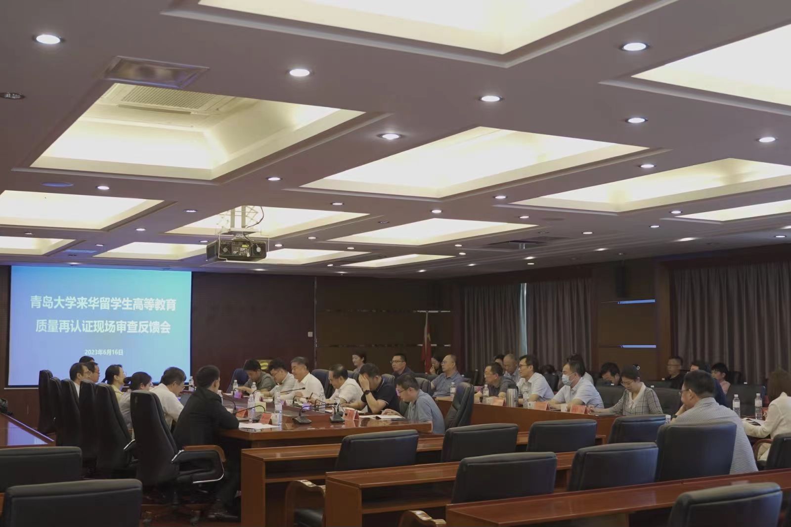 6月16日上午,现场审查意见初步反馈会举行,李军主持会议。韩维春代表再认证小组反馈现场审查初步意见。专家组认为,学校重视来华留学工作顶层设计,建有较为完善的管理体系,走出了服务国家政治外交战略和地方区域经济社会发展的来华留学特色发展之路;学校来华留学工作依托青岛地域优势,强化“留学青大”品牌,着力扩大学生规模,持续优化学生结构,规模、效益等均居山东省属高校前列,为学校的国际化办学发挥了积极的促进作用;学校拓展宣传途径和招生渠道,创新教育项目和培养模式,留学生实习实践活动丰富多彩。同时,专家组也从加强顶层设计,优化归口管理部门设置,均衡留学生专业结构,推进“趋同化”管理和加强制度建设等方面提出了中肯的意见和建议。梁梓对学校来华留学教育的发展给予了肯定和期望。