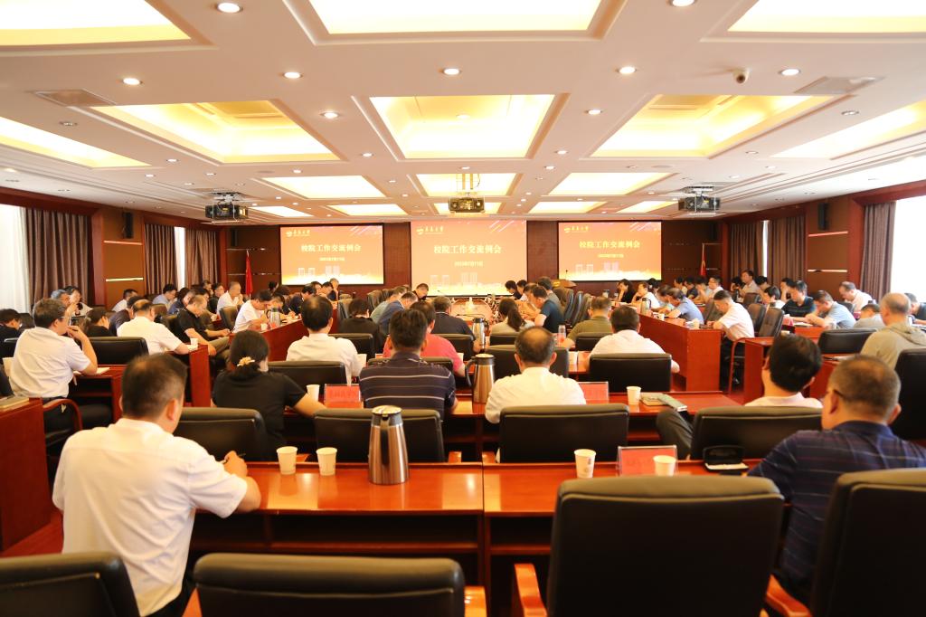 新闻网讯 7月11日上午,学校在办公楼第一会议室召开2023年校院工作交流例会。会议的主题是深入贯彻落实党的二十大精神,着力破解服务地方发展成效不足的问题,推动主题教育走深走实,实现学校高质量发展。校党委书记胡金焱、校长夏东伟现场点评并讲话,会议由党委常委、副校长刘彩云主持。校领导杜方波、肖江南、李军、孔伟金、陈涛、李荣贵、吴世珍出席会议。