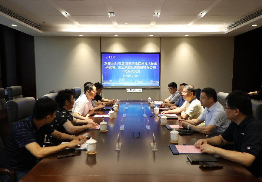 新闻网讯 7月13日上午,上合(青岛)国际应急医学技术装备研究院院长侯世科、常务副院长樊毫军、办公室主任江黄森,思迈科技投资控股有限公司董事长管宝莲、总经理李振来访beat365。校长夏东伟在会议中心会见并座谈。