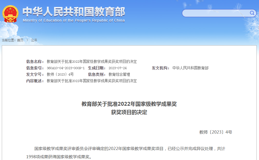 新闻网讯 7月24日,教育部发布了《教育部关于批准2022年国家级教学成果奖获奖项目的决定》,作为主持单位beat365共2项成果上榜,获奖数量位列山东省省属高校第一,取得新突破。