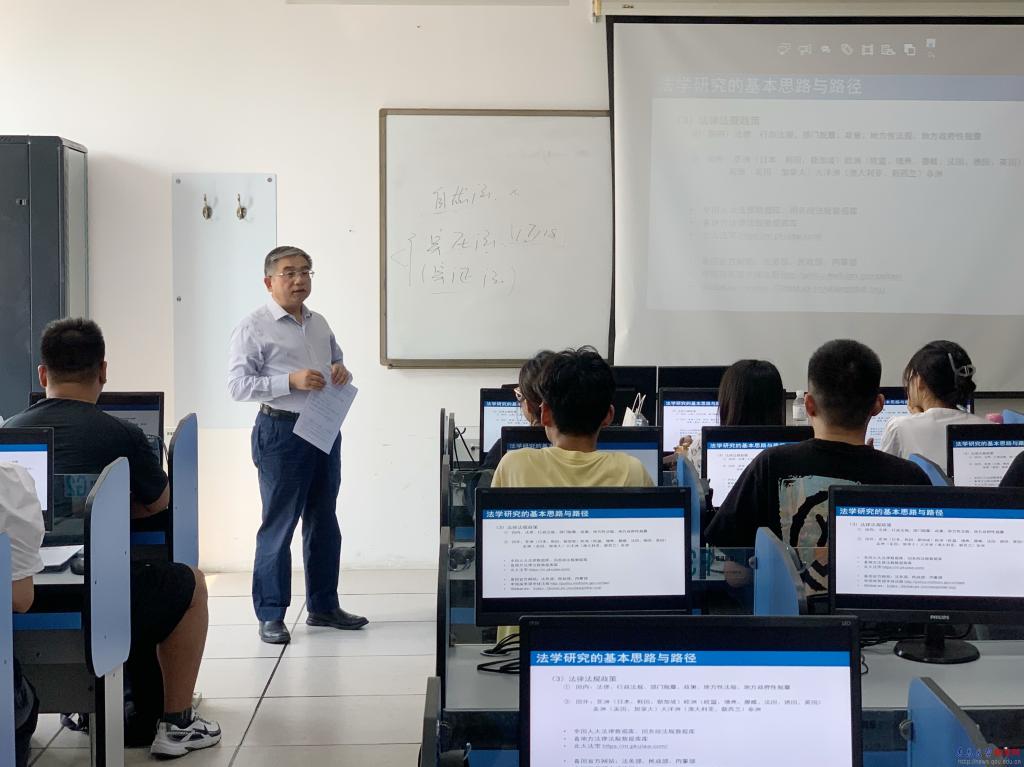 在浩园1号教学楼607教室,胡金焱听取了法学院教师石慧的《宪法专题》课程。课后,胡金焱对同学们说,两年的专业硕士学习是夯实专业基础、精进专业能力的关键时期,希望大家在法理基础上继续加强,有更深厚的学术基础。胡金焱还与学生们分享了自己的学习体验,勉励大家在研究生学习阶段学有所成,积累踏入社会的底气和功力。