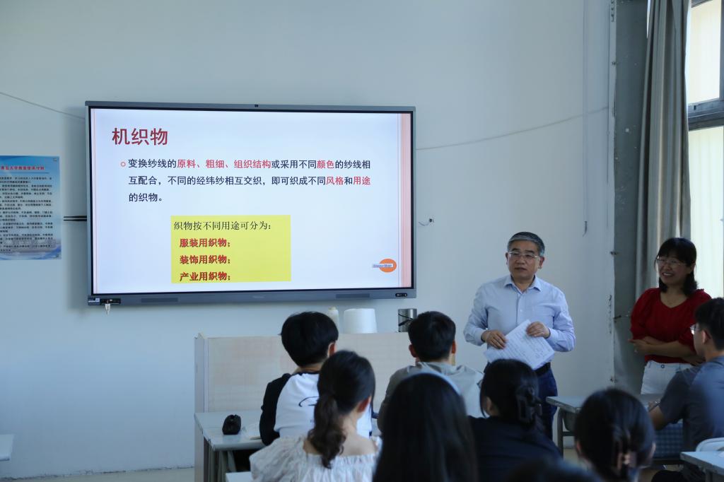 在东12教201教室,校党委书记胡金焱和同学们一起听取纺织服装学院教师郭肖青讲授的《织造学》课程。课后胡金焱与师生进行了亲切交流,胡金焱对郭老师在备课和课堂表现方面给予了肯定并指出:要打造“金课”需要几个方面的努力,一是改变仅由教师灌输的方式,让学生充分的参与到课堂教学中来,营造师生间、学生间积极互动的课堂形态;二是利用教学网站完善和积累教学资料、拓展课程维度,建好线上/线下两个课堂空间;三是改变“只注重考试结果”的传统方式,通过加强课程过程化考核,调动学生参与度和主动性,提高课堂效率;四是要加强教师之间的教学研究交流,安排教师间的教学观摩活动。最后,胡金焱勉励同学们锻炼身体、专心读书,努力成为中国特色社会主义合格的建设者和可靠接班人。