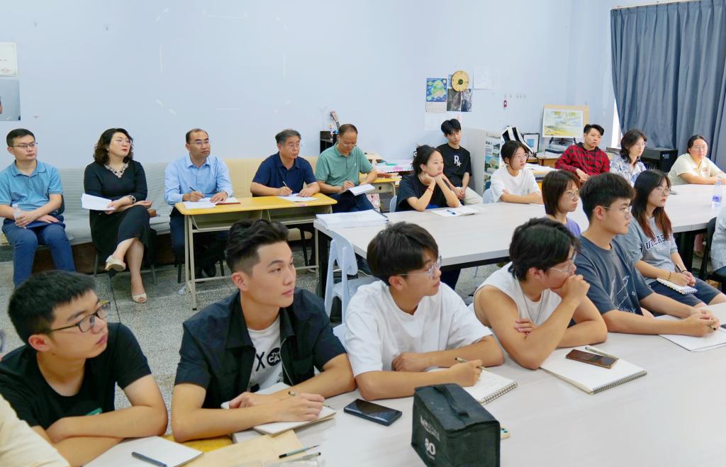 校长夏东伟在德雅楼203教室听取了美术学院教授徐微讲授的《公共景观设计》课程。课后与老师和同学们交流时,夏东伟指出,专业建设和发展要充分发挥学校作为综合性大学学科门类齐全、相互支撑互补的优势,做好学科和专业间和交叉融合,共同进步发展。同时教师和学生都需要加强专业领域的实践活动,学以致用,将论文和设计写在祖国的大地上。同时夏东伟鼓励同学们说,最近几年学校的继续深造率一直稳步提升,2023届学生的继续深造率为38.87%,希望同学们珍惜这最好的时光,学习知识,掌握本领,回报父母,建设国家。