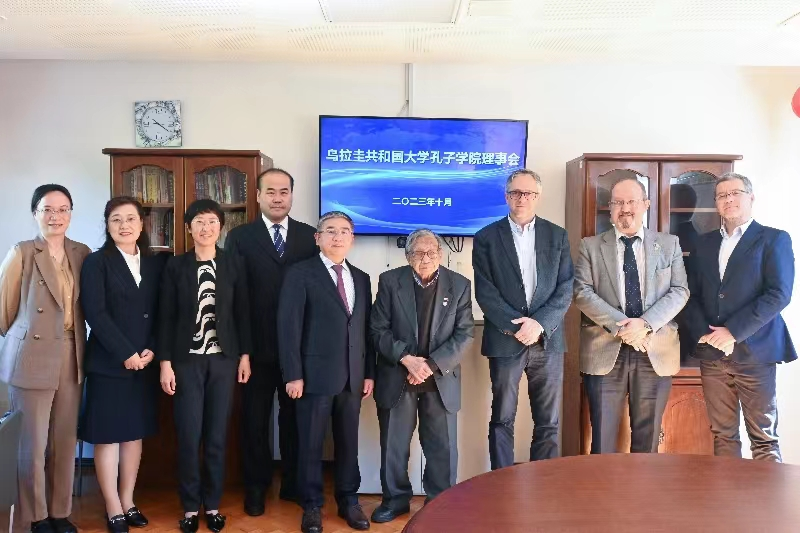 在乌拉圭共和国大学访问期间,两校举行了乌拉圭共和国大学孔子学院2023年度理事会,胡金焱和乌拉圭共和国大学校长阿里姆(Rodrigo Arim)等中外方理事与代表参加会议。会议听取了孔子学院中外方院长关于2022年工作总结和2023年工作计划汇报,审议通过孔子学院2022年度决算和2023年度预算。会议还就下一步两校在继续加强孔子学院合作建设的基础上开展人文交流和科研合作等事宜进行了探讨。