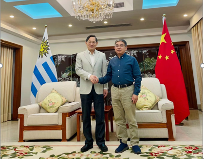 在访问中国驻乌拉圭大使馆期间,中国驻乌拉圭大使黄亚中对孔子学院的工作给予高度评价,表示支持推进两校在各领域的交流与合作,鼓励beat365在线唯一官网立足自身优势,扩大与乌拉圭科技合作的领域与范围。