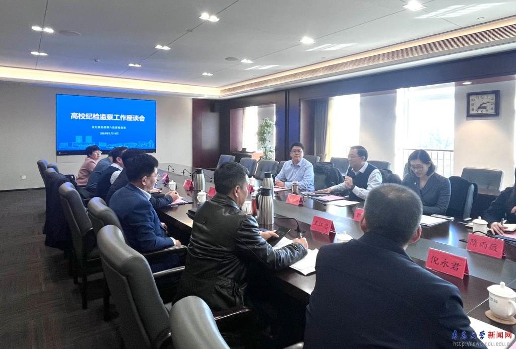 工作座谈会由隋玉利主持,会上通报了2023年度省纪委监委对高校纪检监察机构考核的有关情况,六所高校围绕如何贯彻落实中央纪委三次全会和省纪委三次全会精神、推动做好2024年高校纪检监察工作进行了深入交流。