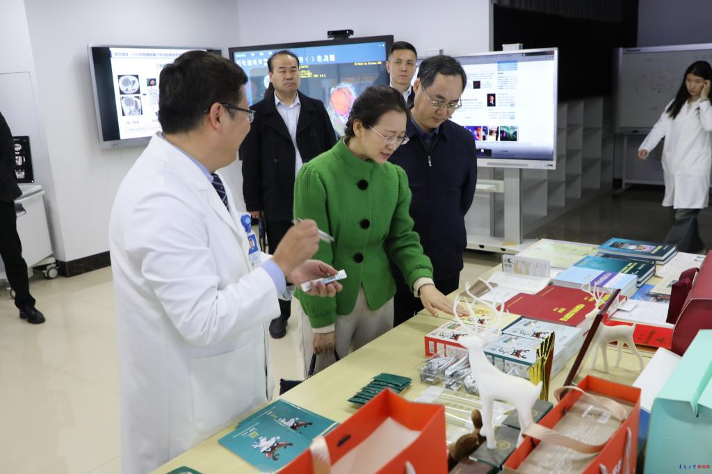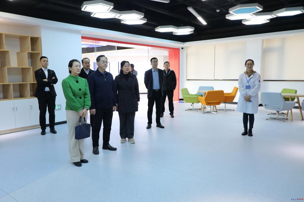 座谈会前,林镔一行到产业技术研究院、分析测试中心、生态纺织省部共建协同创新中心、数字医学与计算机辅助手术研究院进行了实地调研。