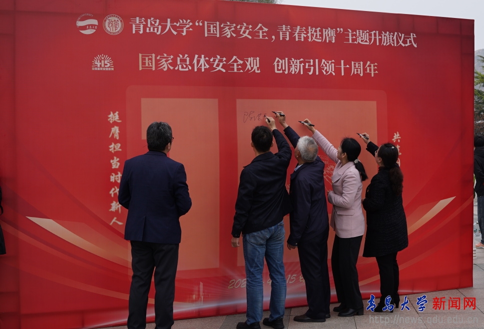 党委学生工作部、团委联合政治与公共管理学院于4月15日7时在金家岭校区图文中心前广场举行“国家安全 青春挺膺”主题升旗仪式。政治与公共管理学院丁金光教授从专业角度对“国家安全”进行了解读,并以《坚持以政治安全为根本》为题,从我国维护政治安全面临的复杂形势、提升维护政治安全能力和水平以及大学生维护国家安全的途径等三个方面进行了讲解。2022级社会工作专业研究生季韬作为退役学生代表,分享了自己的军旅经历,并向同学们发出坚守国家安全信念的倡议。仪式最后,在场全体师生在宣传展板上签字承诺,将坚决拥护党的领导,严守国家法律,捍卫国家安全,绝不从事任何危害国家安全的活动。