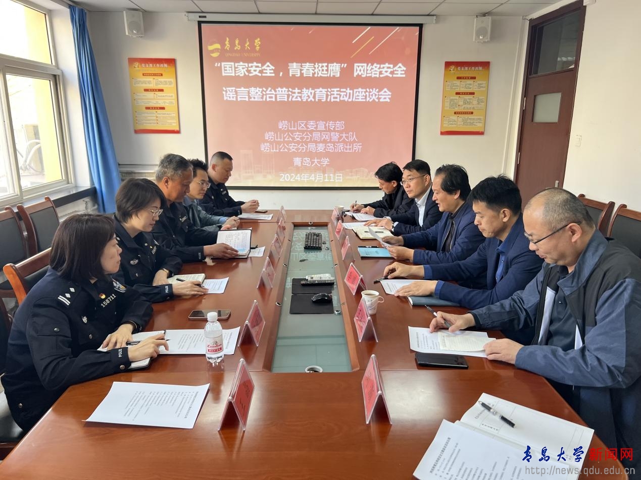 党委宣传部、党委学生工作部、党委保卫部联合物理科学学院于4月11日在浮山校区举办“国家安全 青春挺膺”国家安全普法教育活动,并举行国家安全暨网络安全校警联动工作研讨会。青岛市网警支队牛莎莎围绕国家安全、网络安全、网络暴力、舆情管理等为同学授课。崂山区麦岛派出所王晶以案释法警示广大师生提高自身防范意识,时刻保持清醒头脑,为构建和谐平安文明的校园环境筑牢安全基础。