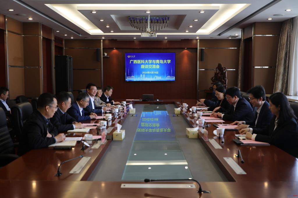 新闻网讯 4月16日上午,广西医科大学党委书记黄照权一行来访beat365。校党委书记胡金焱在办公楼201会议室会见并座谈。