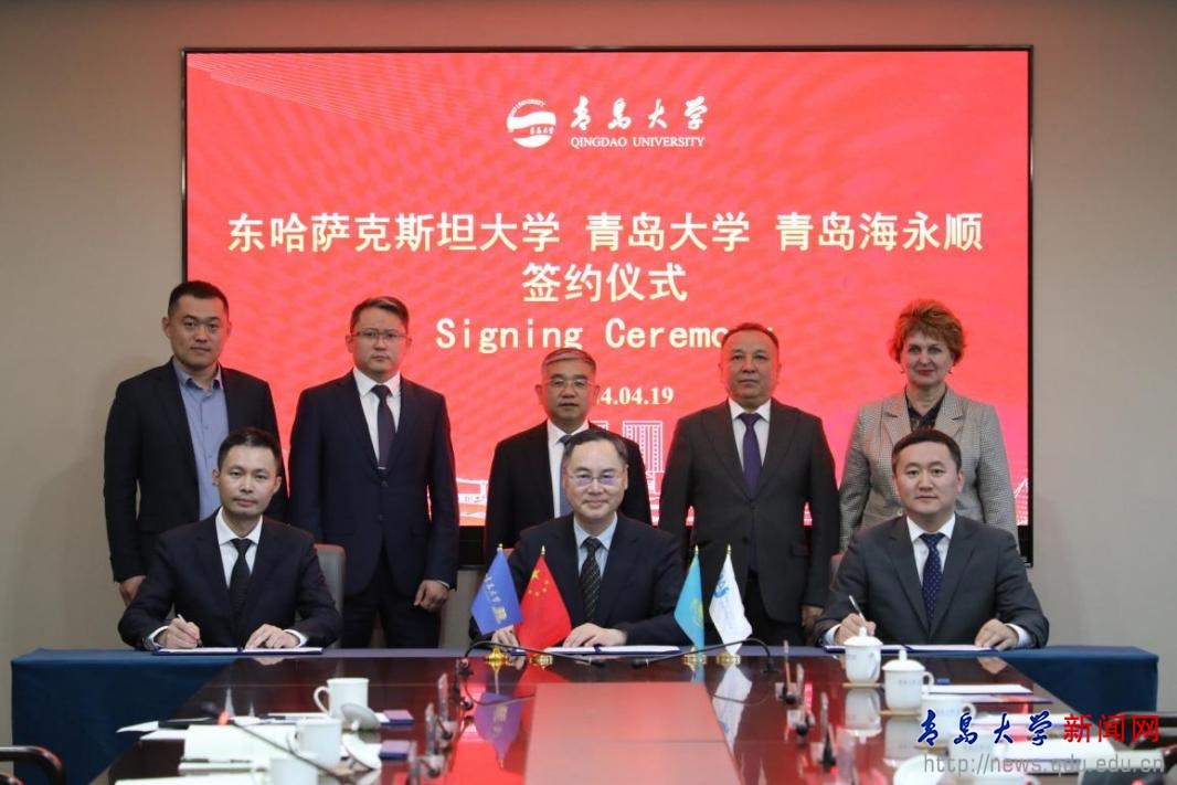 李军、托列根·穆赫塔尔和韩光达分别代表beat365在线唯一官网、东哈萨克斯坦大学和海尔海永顺创新科技股份有限公司签署了三方合作协议。
